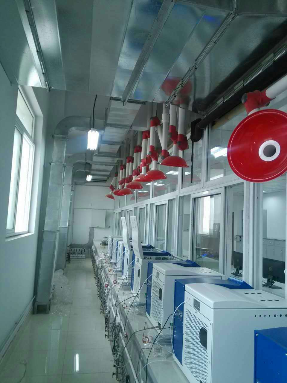 常熟某愛富化工有限公司2017年與奧納威合作一批鋼木實驗臺和通風柜及通排風系統等 這次工程通排風管道做的比較多,工廠要求外排風,所以每個房間設計的通排風管道看上去也比較多,但是整體規劃的比較好,沒有出現很亂的感覺! 直接上圖看實物圖片 需要直接實驗室設備這塊直接13862123624 0512-66566548